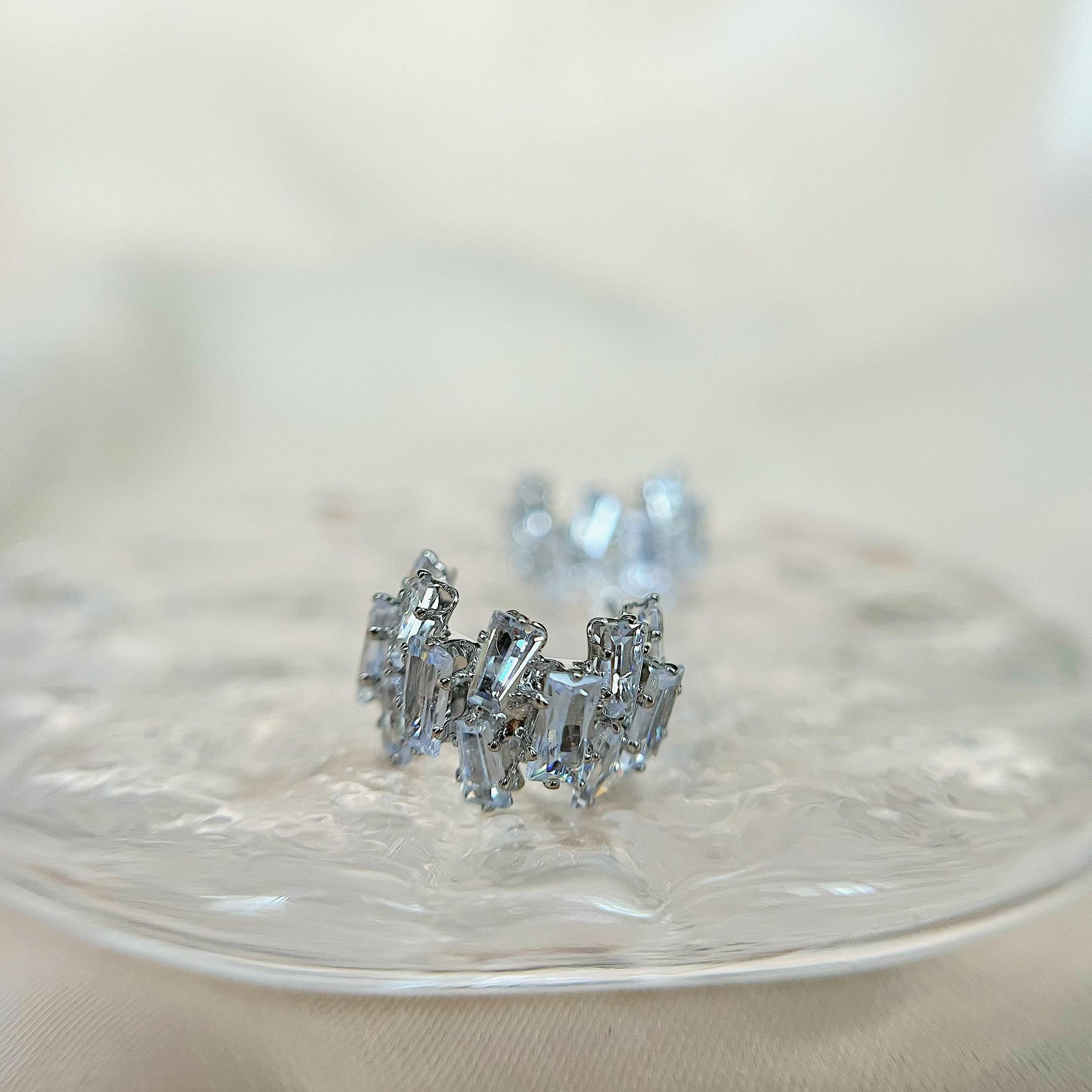 These stunning silver hoop earrings are elegantly designed, featuring a sleek, polished finish that exudes sophistication. The hoops are gracefully adorned with sparkling silver gemstones, adding a touch of sparkle and refinement to the classic design. Perfect for both casual and formal occasions, these earrings effortlessly elevate any look with their timeless charm and modern appeal.